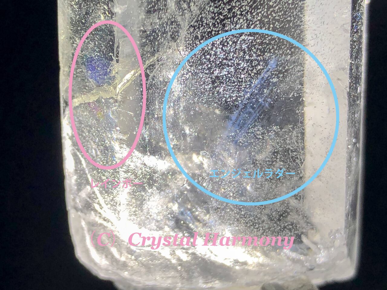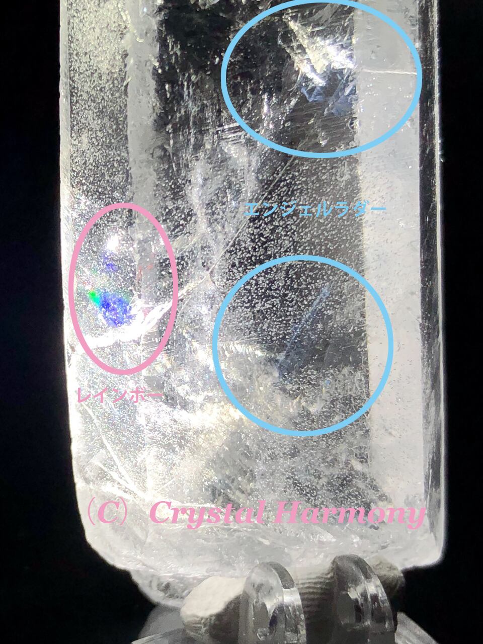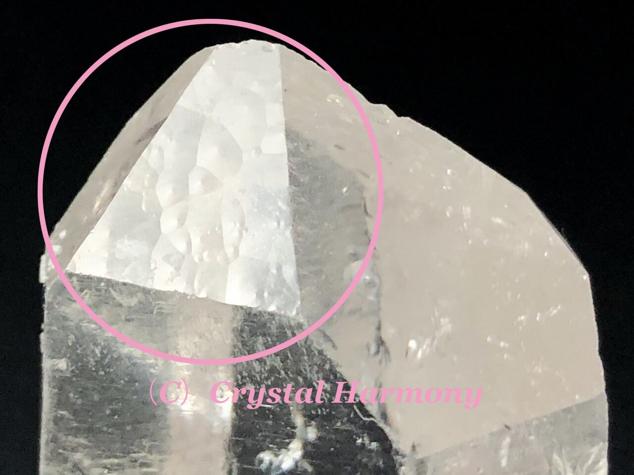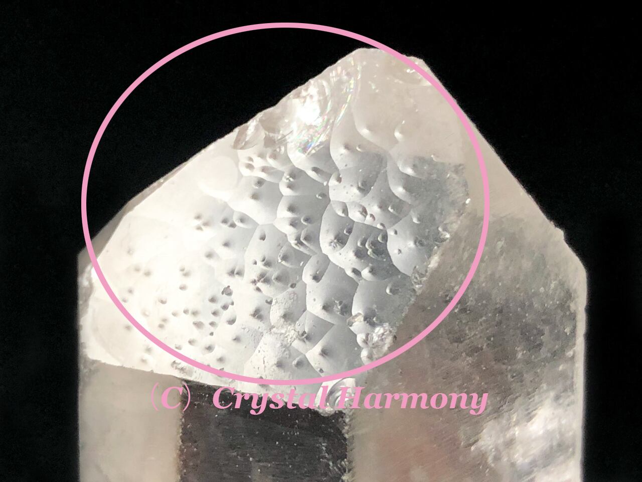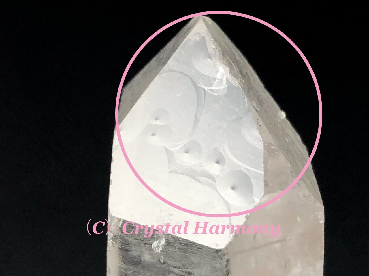 これは、自然界の酸が表面のクリスタルを溶かした現象でアイスクリスタルなどにも表れるものらしいのですが、この紋様が入っているエンジェルラダークオーツは特に珍しく幻のクリスタルとも呼ばれています。