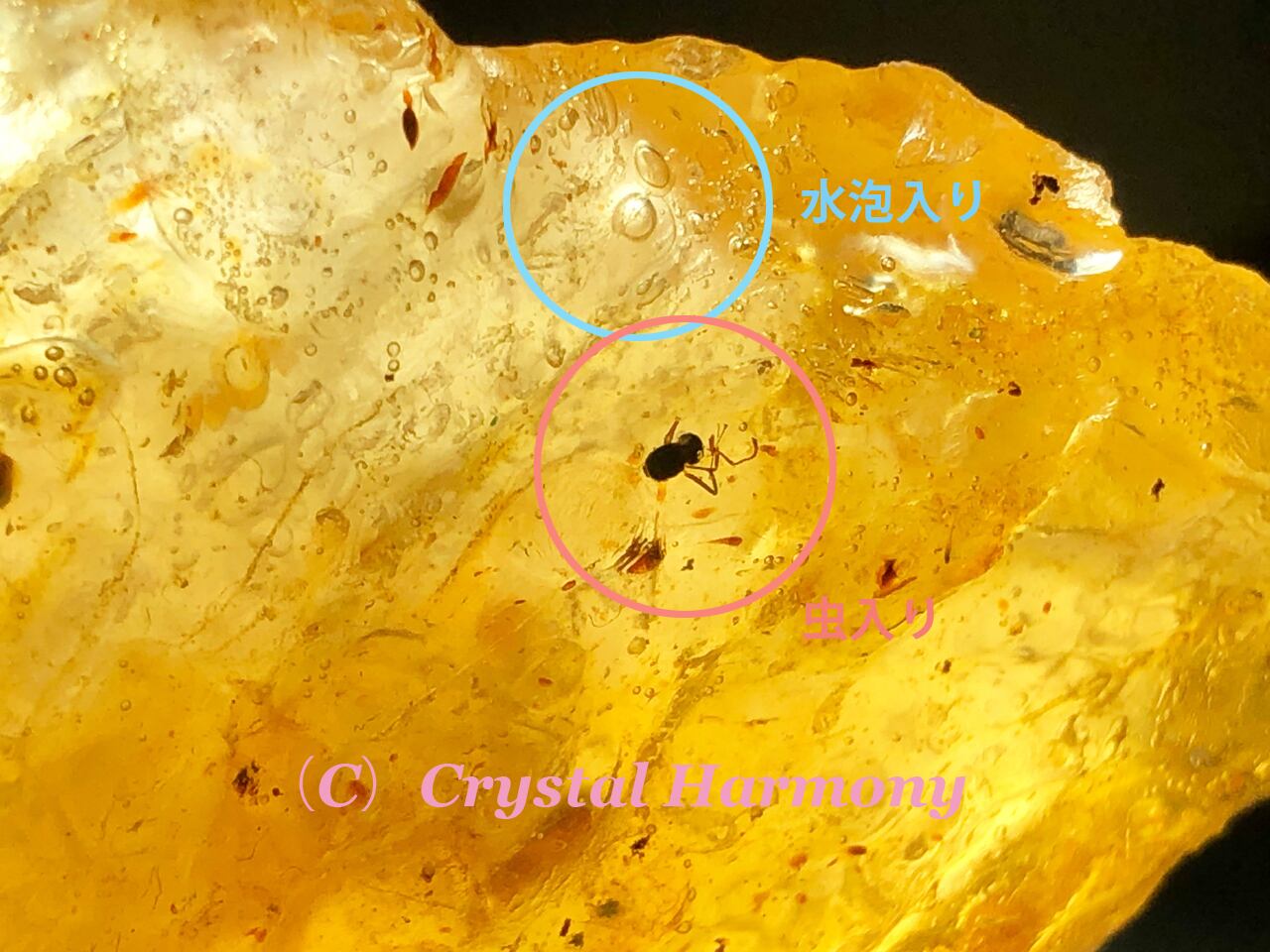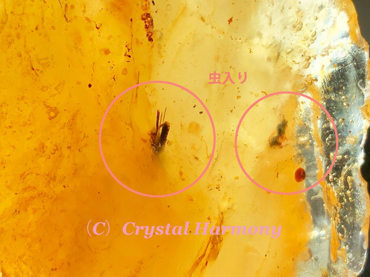 虫、水入りアンバーは、木の樹脂が、偶然に昆虫や水泡、内包物を内包し固まり化石化した極めて珍しいアンバーで、数万個に1個の割合で産出される貴重なアンバーです。