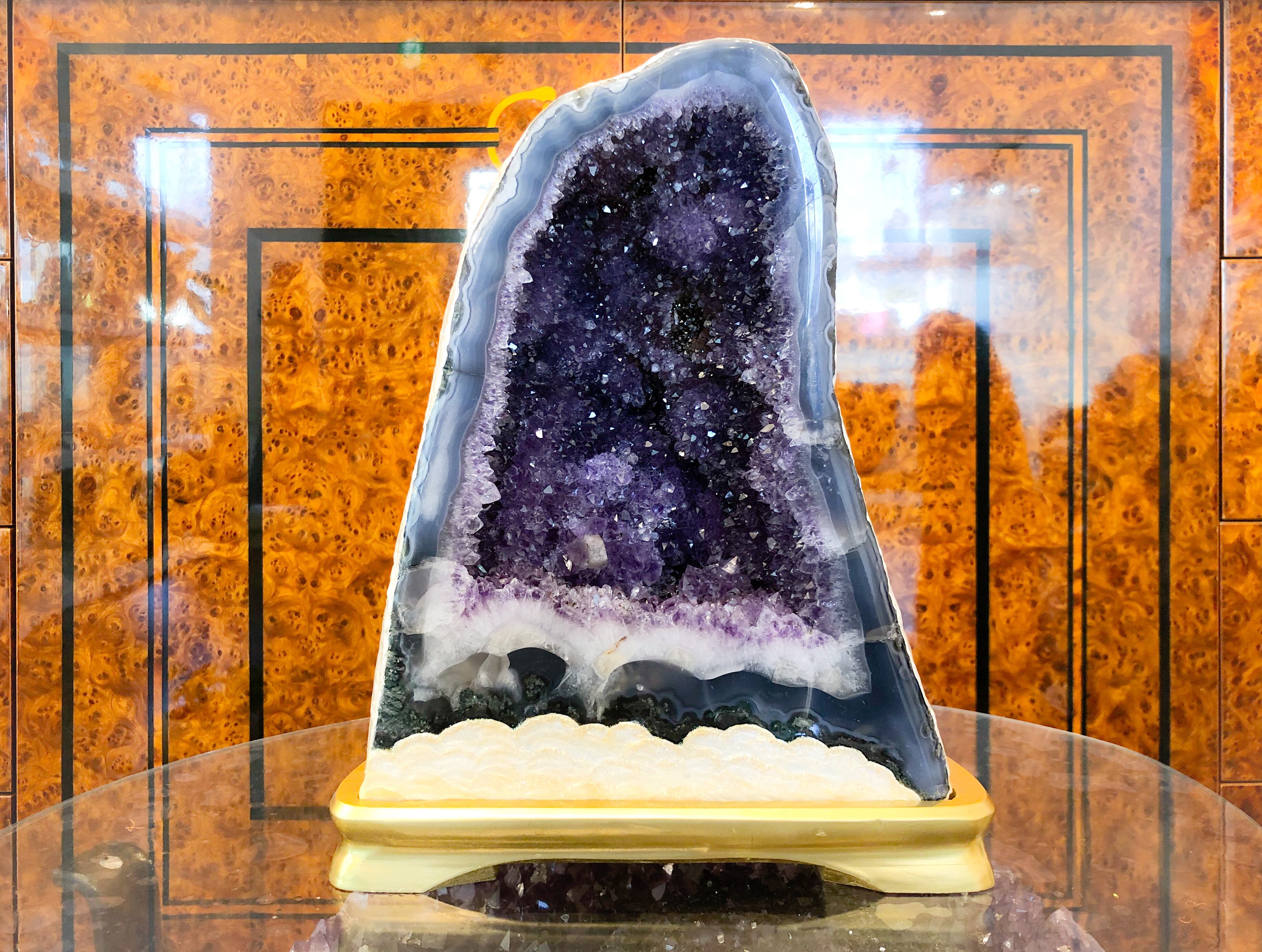 バラ色のアメジストが織りなす独特の美しさは、まるで心の奥深くに安らぎをもたらすかのようです。このドームは、内面の温かさや優しさ、感情の安定を手助けするようなエネルギーを放っています。